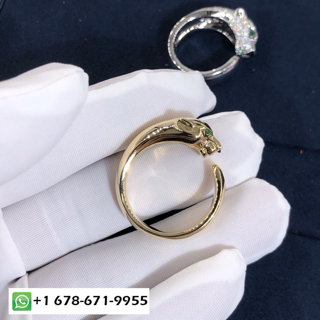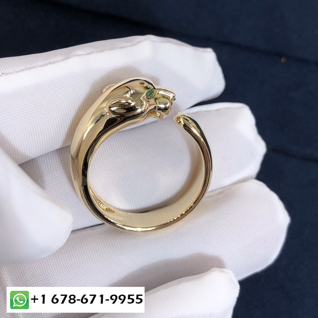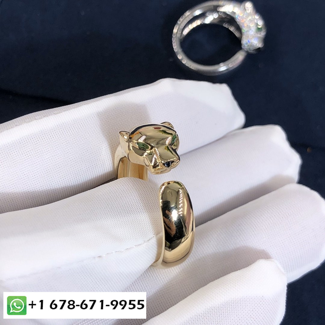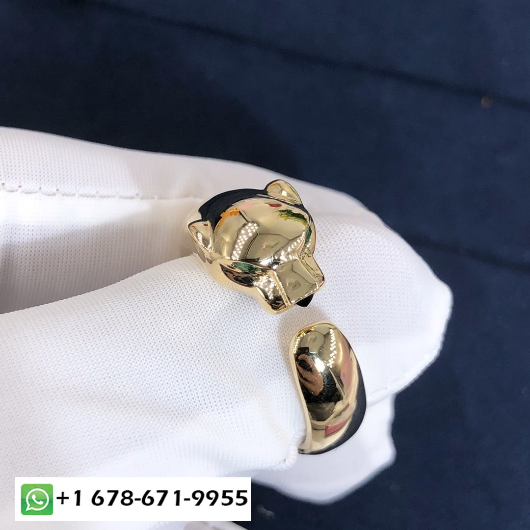 Panthère de cartier ring fait sur mesure en or jaune 18 carats,onyx, Fixé avec 2 grenats tsavorite. Largeur du motif: 7.31 mm.
