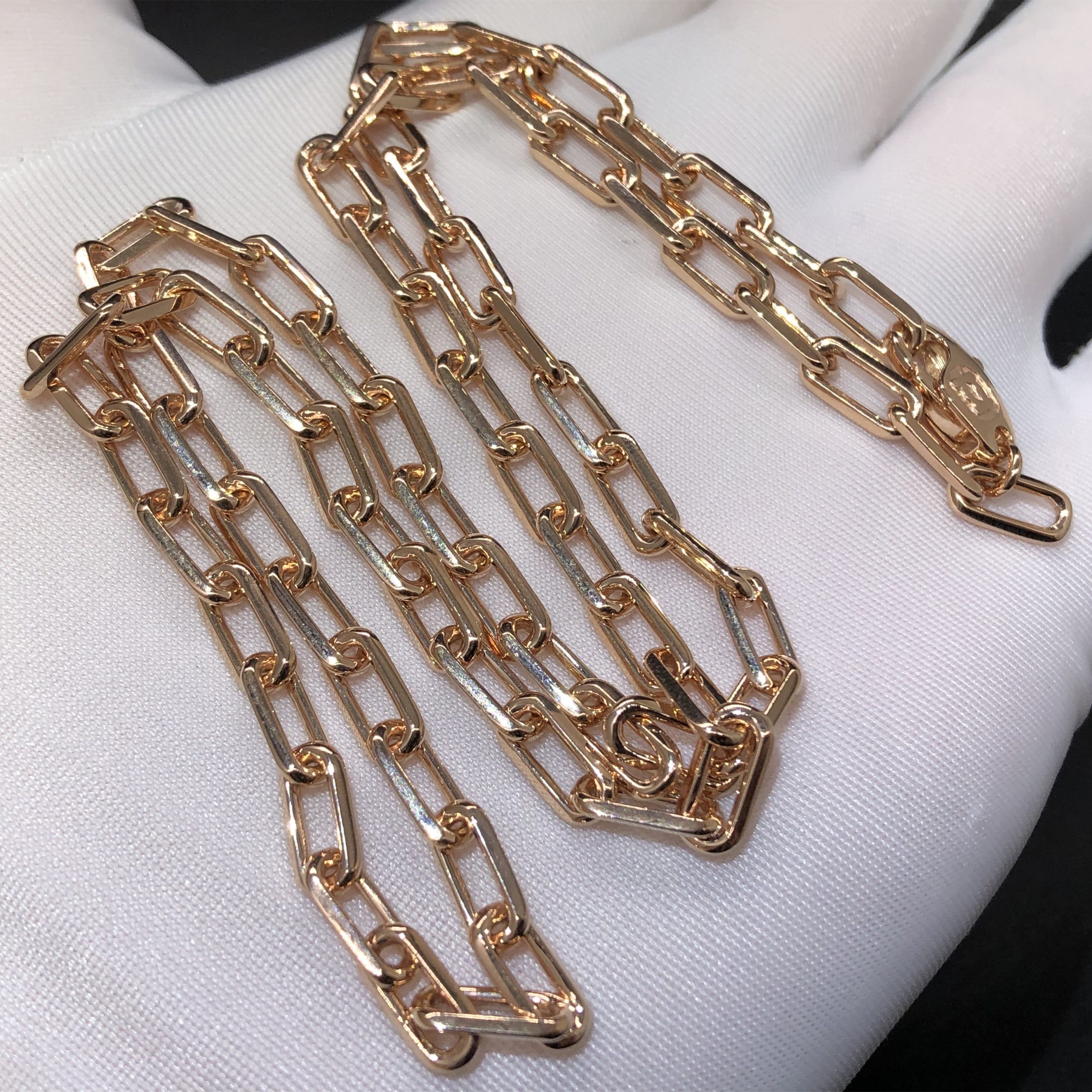 Collier Santos de Cartier fait sur mesure en or rose 18 carats,Poids d'or:30g,Longueur:45cm.Ce collier est également disponible en or blanc 18 carats et en or jaune 18 carats sur demande.